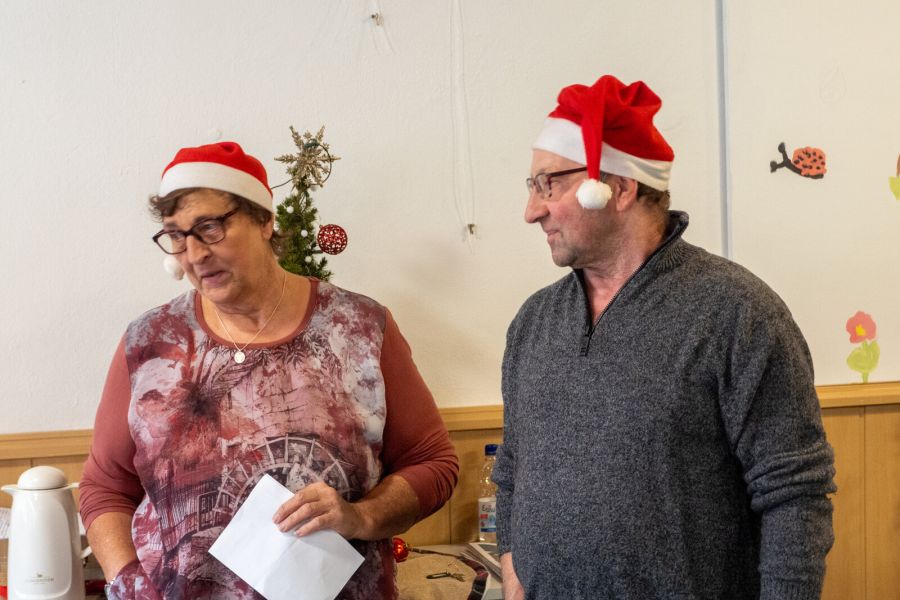 Spannung kommt auf, als Sabine den Jutesack hereinschleppt, die Päckchen mit Nummern versieht und Zettelchen ziehen lässt. Voller Vorfreude öffnen alle ihre liebevoll verpackten Präsente.