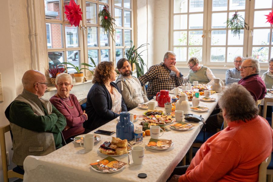 Alle Jahre wieder treffen sich die Teilnehmerinnen und Teilnehmer in Hameln beim Paritätischen Wohlfahrtsverband. Jeder bringt ein Wichtelpaket mit, das in einem großen Jutesack abgelegt wird. Die Kerzen sind angezündet, und die Freude über die ansprechende Tischdekoration sowie die leckeren Brot- und Kuchenplatten stimulieren schon mal die Speichelproduktion. Nach der Begrüßung erklingen die ersten Töne, einige summen schon mit, und dann ist auch schon mal erste „Hmm“ oder „lecker“ zu hören. Die kleingeschnittenen Kuchenstücke animieren zum Probieren. Das sehr gut ankommt. Es ist eine gelöste Stimmung, in der viel erzählt und gelacht wird.