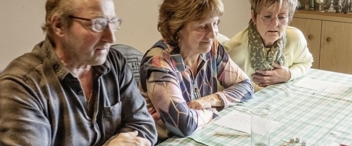 Gut gesättigt sehnte man sich eigentlich nach einem Ruheplatz, doch dazu kam es nicht, denn das Spielangebot lockte: Kniffel oder Skat. Zwei Gruppen entschieden sich für das Würfelspiel, während eine dritte Gruppe zum Kartenspiel griff. Die Stimmung war ausgezeichnet, besonders wenn es einem Spieler gelang, einen „Kniffel“ zu würfeln. Der Spielspaß war allen deutlich anzusehen. Nach drei Runden wurden die Punkte gezählt und die Gewinner ermittelt. Jede Teilnehmerin und jeder Teilnehmer durfte sich über einen kulinarischen Preis freuen.